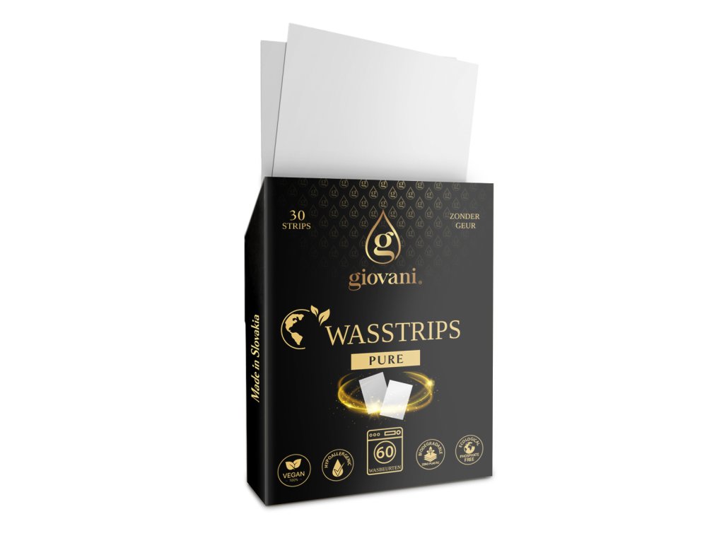 Op de markt zijn veel soortgelijke producten te vinden. Toch verschillen ze sterk in kwaliteit. Wij raden aan om producten, vooral strips uit China, te vermijden. Sommige fabrikanten geven de herkomst liever niet prijs. Wij zijn er trots op dat de wasstrips Giovani® in Slowakije worden geproduceerd. Bij de productie hechten wij veel waarde aan de hoogste kwaliteit, zoals dat bij de producten van Giovani® de standaard en de basis vormt van ons succes. Met onze wasstrips kunt u er zeker van zijn dat ze 100% oplosbaar zijn, sterk geconcentreerd, van hoge kwaliteit en vrij van onnodige stoffen.