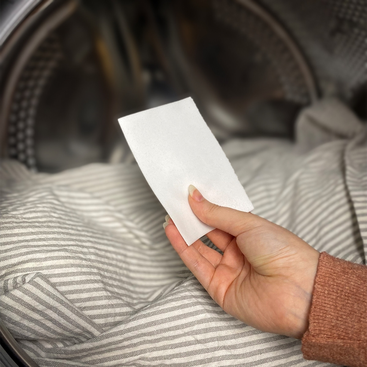 Plaats de strip op of onder het wasgoed in de trommel.